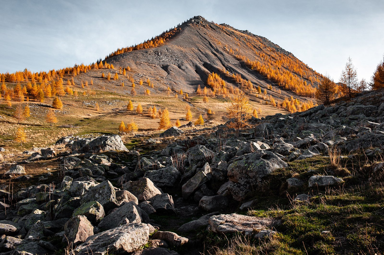 La montagne en automne n’est qu’un des nombreux visages des paysages alpins que je photographie. Chaque saison et chaque ambiance offrent une lecture différente du relief.